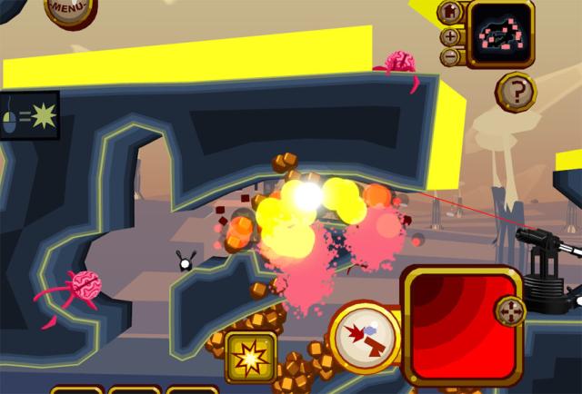 Gra logiczno - zręcznościowa wzorowana na popularnej Scorched czy też serii Worms. Celem gry jest usunięcie za pomocą potężnego działa wszystkich różówych mózgów obcych istot. Problem w tym, że działka nie można przesuwać, a jedynie nakierowywać lufę (tylko w pewnym zakresie), ustalać siłę wyrzutu oraz za pomocą przycisku myszy nieznacznie zmieniać tor pocisku, lub go natychmiast detonować itp. A jeśli dodamy do tego skomplikowane układy plansz, to uzyskamy program wymagający logicznego myślenia i przynajmniej podstawowej znajomości praw fizyki. Gra jest darmowa.