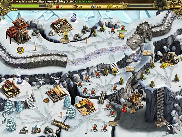 The Chinese Empire is in grave danger as the Nomads from the North threaten the wealth and prosperity of its lands. Kong Baotu, a smart and resourceful man, accepts the challenge to achieve the impossible. He commits himself to building the Great Wall that will protect China from the warlike barbarians. In return, he asks for permission to marry the Emperor's beautiful daughter, Fan Tanrui. Join Kong in his epic adventure! Help him save the Empire and marry Fan. Your journey will take you to the farthest reaches of China, through the emerald-green hills and treacherous rocky cliffs. In more than 40 levels, you will conquer the snowy mountain-peaks and cross the withering deserts. You will gather food and lumber, mine stone and iron, survive hurricanes and thunderstorms, all for the noble goal of completing the greatest building in the history of mankind – The Great Wall of China.