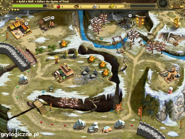 Do budowy Wielkiego Muru jest potrzebne drewno, kamień oraz żywność i złoto. Problem w tym, że nie ma ich wystarczającej ilości. Dlatego będziesz musiał wybudowywać farmy, tartaki, kopalnie, które na bieżąco i w szybkim tempie będą dostarczać odpowiednich surowców. Wprawdzie w okolicy są drzewa, kamieniołomy i różne rośliny, ale jest ich ograniczona ilość i prędzej czy później zostaniesz "zmuszony" do stworzenia wyżej wymienionych budowli. W różnych etapach gry otrzymasz dodatkowe cele do zrealizowania, jak na przykład: wybudowanie fortu, skolekcjonowanie statuy i masek. Gra zawiera czterdzieści etapów.