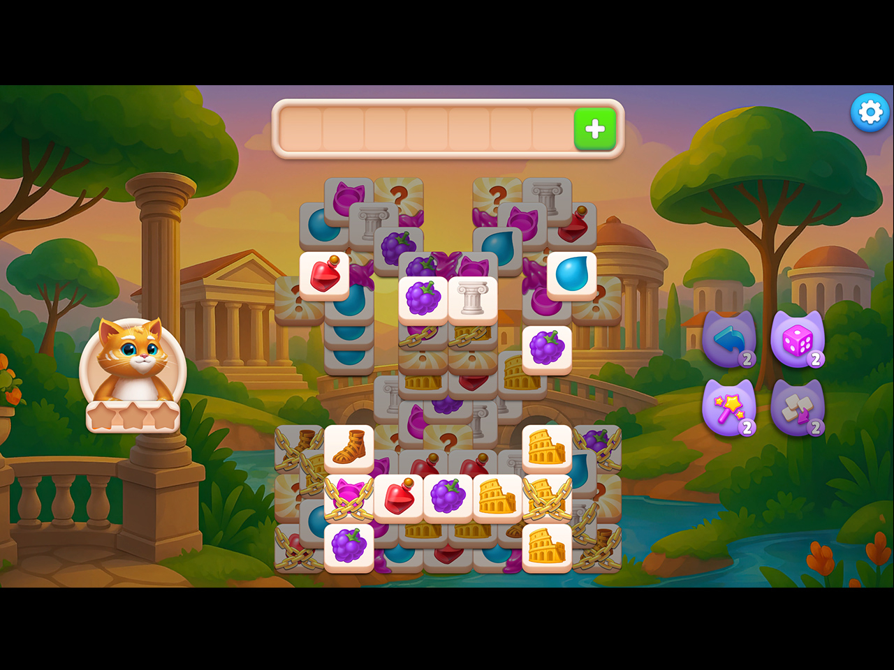 W grze towarzyszy Ci sympatyczny kot pełniący rolę przewodnika po starożytnym, lekko baśniowym świecie inspirowanym Rzymem. Każdy ukończony poziom przybliża Cię do odbudowy dawnego imperium, dzięki czemu gra wprowadza przyjemny element progresu i dekoracyjnej rekonstrukcji.