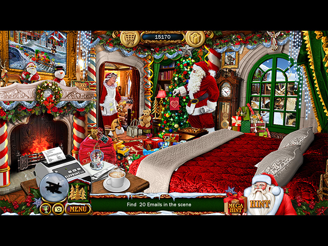 Trzonem zabawy jest wyszukiwanie ukrytych przedmiotów na bogato ilustrowanych planszach. Gracz odnajduje prezenty, ozdoby, zabawki, aniołki oraz inne elementy związane z czasem świąt. Sceny uzupełniają lekkie mini gry i łamigłówki, dzięki czemu zabawa jest różnorodna i przyjemna zarówno dla początkujących, jak i doświadczonych miłośników gatunku. Można wybrać poziom trudności dopasowany do własnego tempa i nastroju.