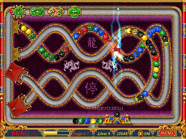 Ochroń chińskie pagody przed starożytnymi smokami. Twoim zadaniem jest strzelanie kulkami do już istniejących, aby je zniszczyć. Ich likwidacja następuje po trafieniu w conajmniej dwa znajdujące się koło siebie kulki tego samego koloru. Gra zawiera 88 etapów.