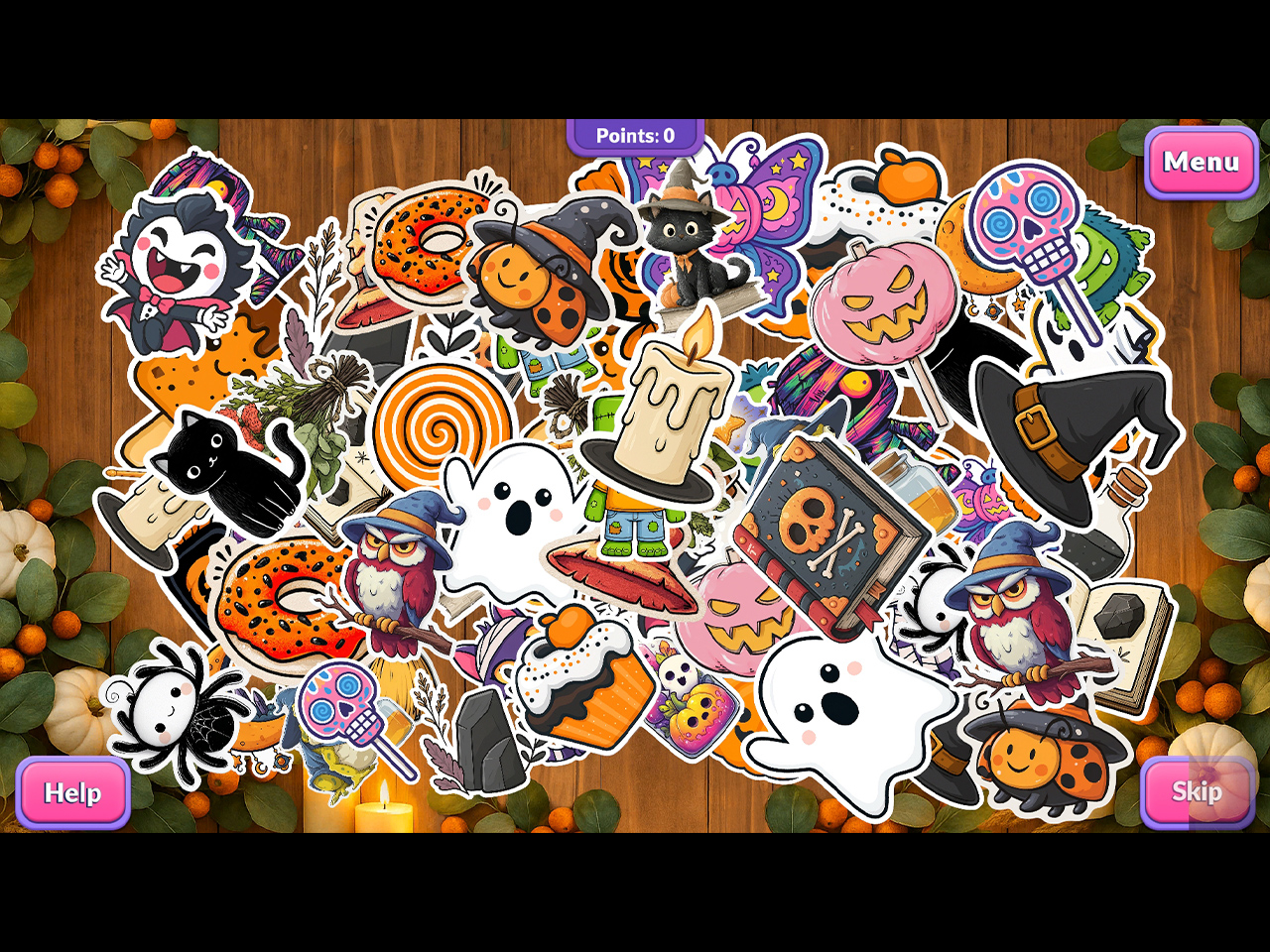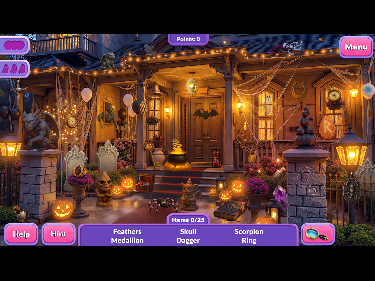 Rozgrywka opiera się na klasycznym poszukiwaniu ukrytych obiektów w bogato ilustrowanych scenach, takich jak słodka witryna sklepowa, przytulny salon z kominkiem czy mroczny dom pełen duchów. Oprócz tego w grze pojawiają się różnorodne minigry i łamigłówki logiczne, które przełamują rytm zabawy i dodają jej świeżości. System nagród motywuje do dokładnego eksplorowania lokacji, a możliwość ponownego odwiedzania miejsc pozwala odkryć wszystkie sekrety i zebrać kolekcję bonusowych przedmiotów. Halloweenowy klimat towarzyszy na każdym kroku, nadając rozgrywce wyjątkowy charakter.