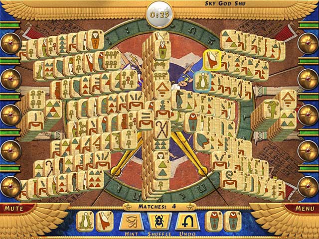 Chińska klasyczna układanka Mahjongg osadzona w klimatach gry Luxor. Zdejmij wszystkie elementy z planszy.