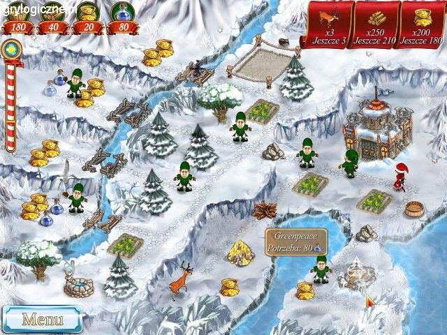 Znajdź renifery św. Mikołaja, by uratować święta! Pod koniec gry "Nowy Jankes na dworze króla Artura 2" Mary rzuciła zaklęcie mające zabrać ją i Johnny'ego do domu. Zaklęcie skończyło się jednak wielkim wybuchem i wystraszyło renifery Świętego Mikołaja. Brodaty oczekuje teraz, że Mary i Johnny odnajdą zwierzęta przed wigilią. Prowadząc przez zimowy świat dwójkę bohaterów i grupę wesołych elfów, będziesz musiał sprawnie zarządzać czasem i surowcami. Dobra organizacja pozwoli ci obronić teren przed atakiem wściekłych bałwanów, chichoczących wiedźm i śmiertelnych yeti! Nie przegap tego świątecznego hitu!